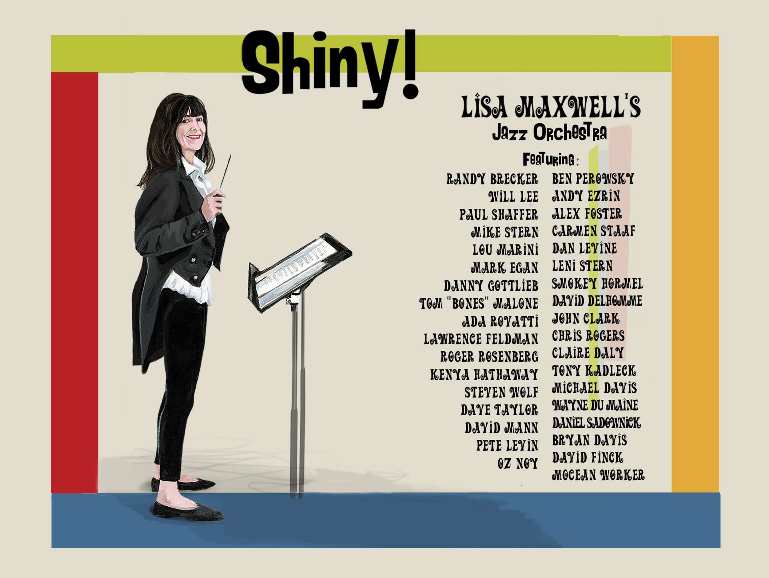 “Shiny” is a big band album of fresh, swingin', funky arrangements (by me), dedicated to the late, great trumpet player, Lew Soloff. The star-studded band, featuring Randy Brecker, plays compositions by myself, Wayne Shorter, Hiram Bullock, Carl Fischer and John Carisi.